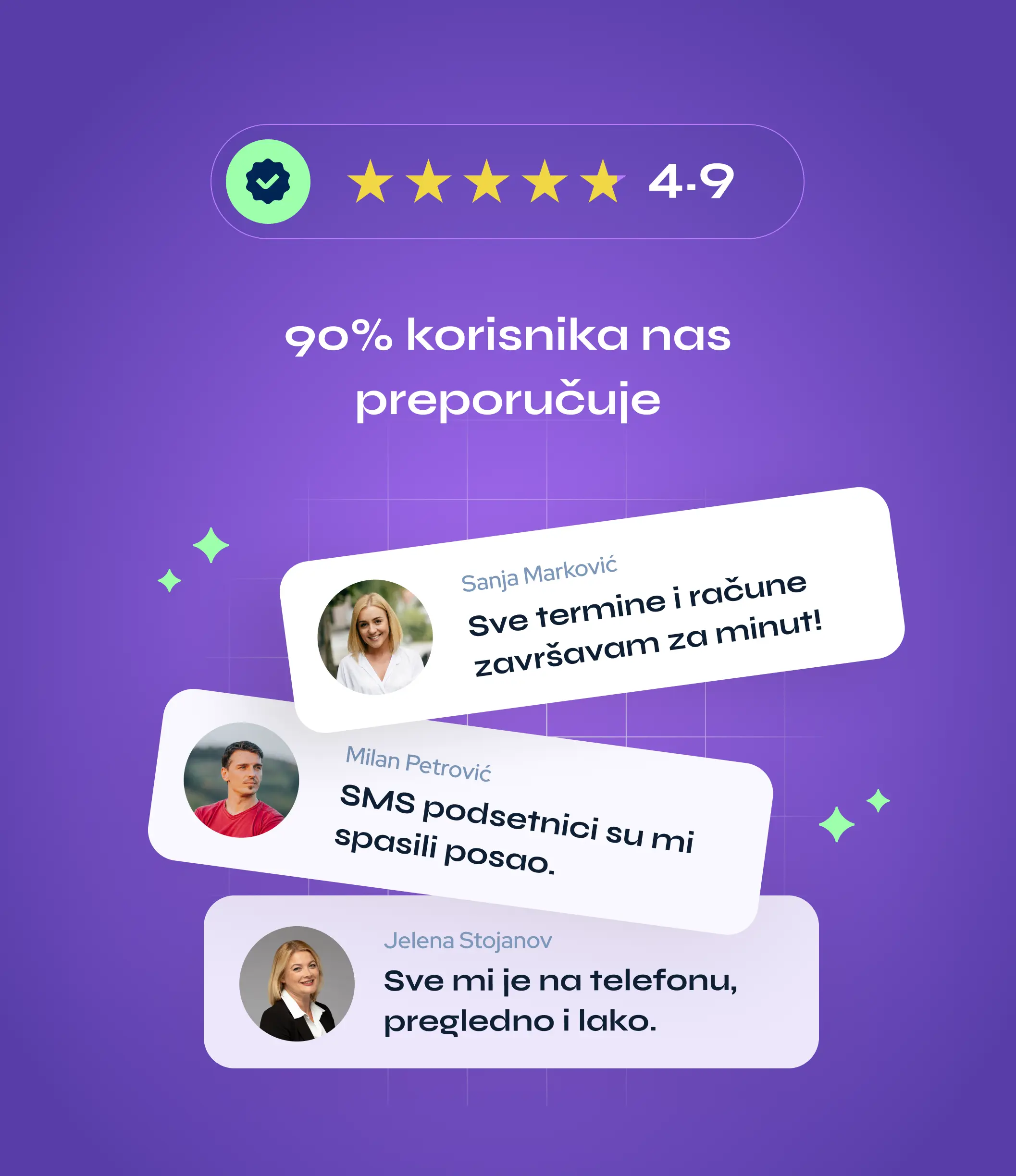 Možete automatski slati podsetnike za termine klijentima. U paketu imate određeni broj poruka, a dodatne se naplaćuju po potrebi.